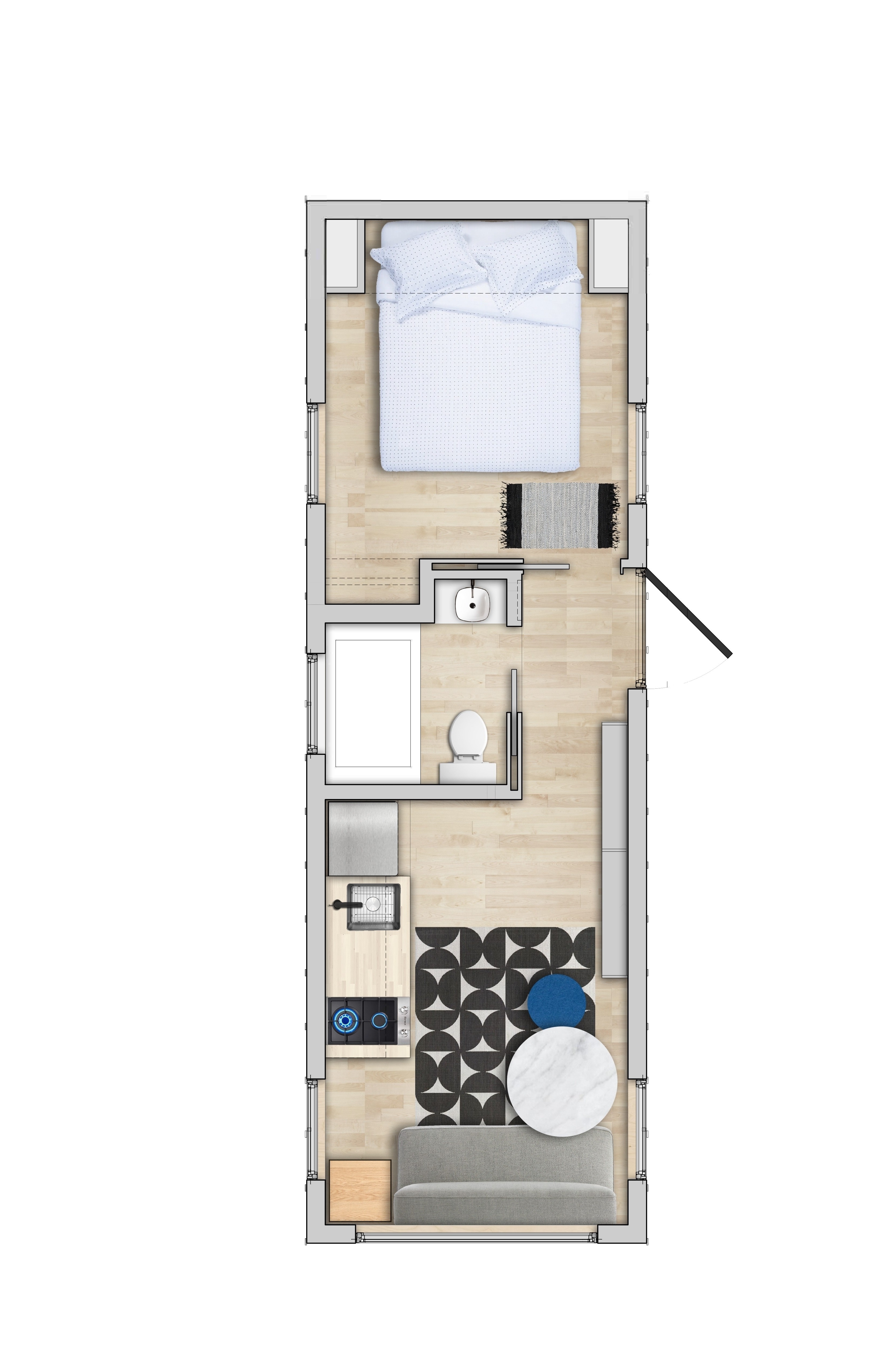 The VIA is our tiny home and applies fine architectural design to the trendy alternative home style. Tiny homes offer a truly affordable option for starter homes, second homes or a vacation/hospitality setting, so the VIA provides the opportunity for people to build equity instead of renting. The VIA can be delivered anywhere trucks can go.
